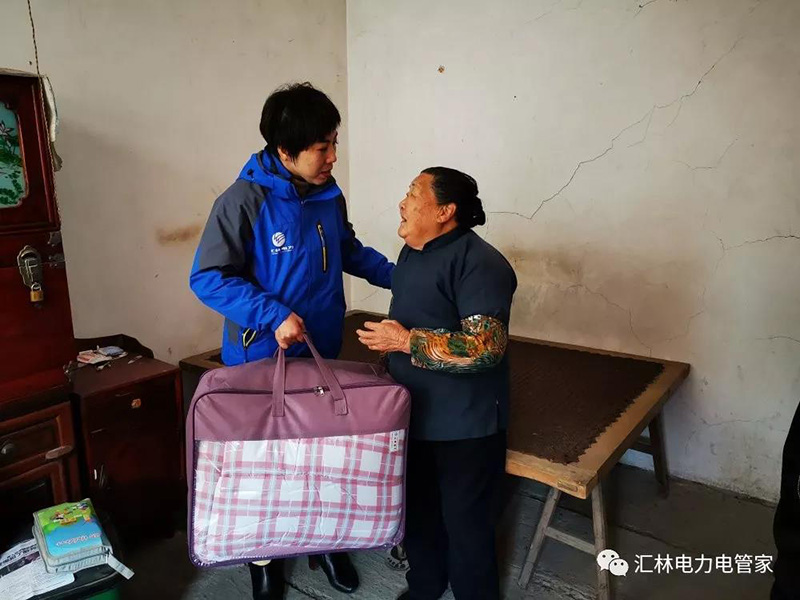 经老奶奶介绍,她的儿子在一场车祸中不幸失去了生命,随后的两年儿媳妇也离开了,只剩下她的孙子一个人生活,三十八岁了,也一直单身,平日里的生活都是靠镇政府或亲朋好友日常接济才得以维持正常的生活。因为年轻的时候受了些刺激导致他的精神恍惚,无法参与工作来维系正常的生活……说起这些往事的时候奶奶热泪盈眶,我们的陈总觉得奶奶生活不容易,送上汇林人的温暖——被子&慰问金。奶奶颤抖着双手,一直道谢,感恩我们是好人!